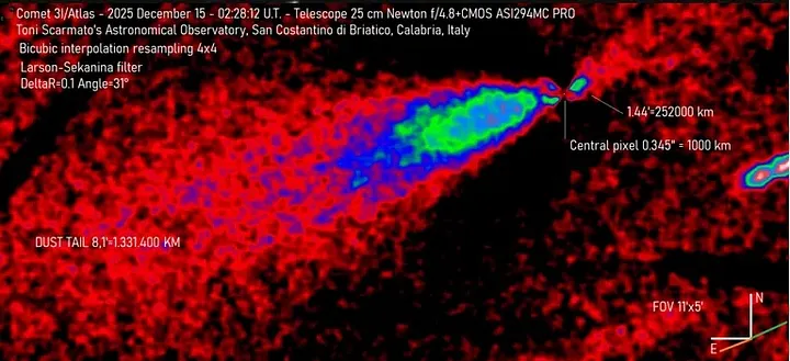 Новая аномалия, связанная с размером частиц, была обнаружена у межзвездной кометы 3I/ATLAS. Об этом в своем блоге сообщил астрофизик из Гарвардского университета Ави Леб. Изображения коллимированной противоточной струи от 3I/ATLAS в направлении к Солнцу (внизу сле ... Читать дальше » |